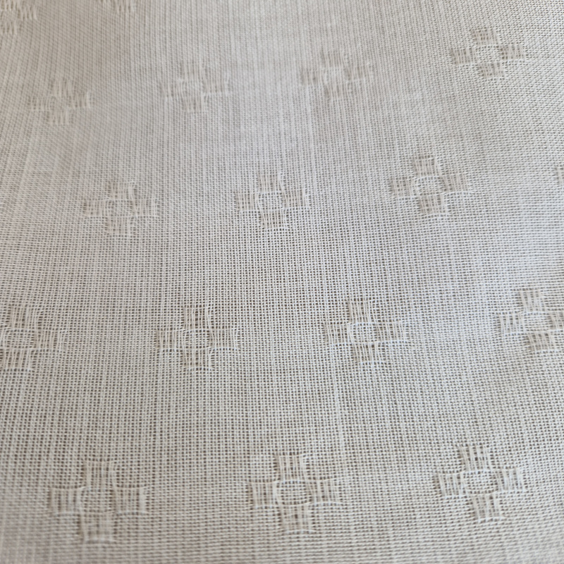 Rovaniemen esiliinakangas on valkoista kuvioon käsinkudottua puuvillaa.