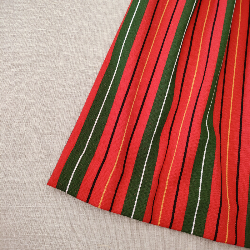 Kirkkonummen puvun hameessa on leveitä kirkkaan punaisia ja vihreitä raitoja. Hame on vyötäröltä laskostettu. Kaikki valmiit puvun osat valmistetaan tilauksesta asiakkaan mittojen mukaan ja toimitusaika sovitaan erikseen.
