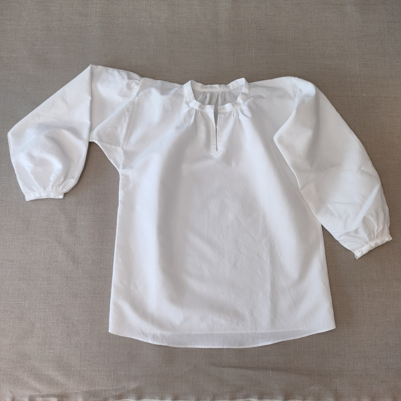 Paidassa on etuhalkio ja pieni pystykaulus. Miehustan väljyys on poimutettu pääntielle. Hihat on poimutettu tyvestä ja hihansuusta. Hihansuissa on halkiot ja nappikiinnitys. Kaikki valmiit puvun osat valmistetaan tilauksesta asiakkaan mittojen mukaan ja toimitusaika sovitaan erikseen.