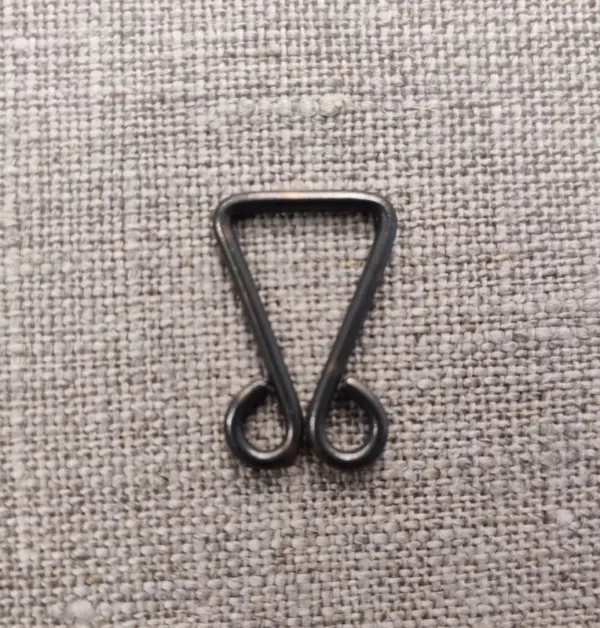 Päällystettävä metallinen lankalenkki Sulkavan, Padasjoen, Vetelin ja Sääksmäen naisten liiveihin. Korkeus 22mm.