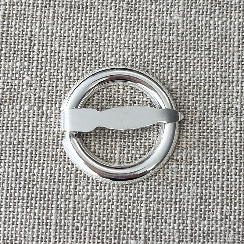 Hopeinen pienehkö paljinsolki jakun kiinnitykseen. Valmistettu Suomessa.