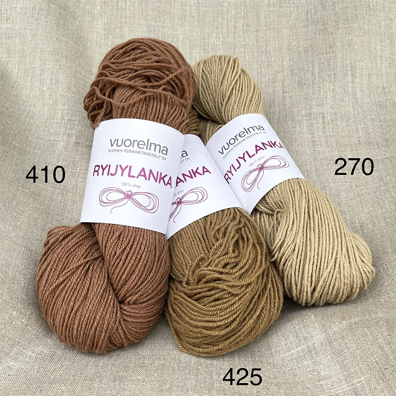 Tiukkakierteinen kolmisäikeinen karstavillalanka ryijyn nukkalangaksi, joka sopii myös villakirjontaan ja kanavatöihin. Ryijylangan kartassa on 85 väriä. Tämän tuotteen vaihtoehtoina on puolet värikartasta, toisessa tuotteessa on värikartan pienempien numeroiden puolisko.