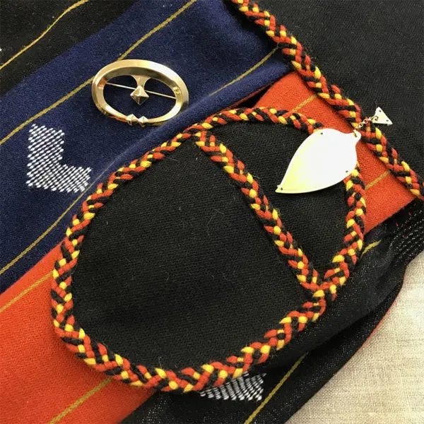 Pakkaus sisältää valmiiksi leikatut taskun kappaleet, punoksen tarvikepakkauksen sekä taskun valmistusohjeen.