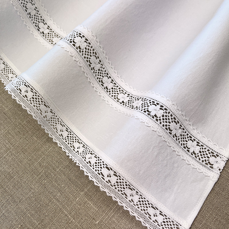 Pakkaus sisältää pellavakankaan, pitsit ja ohjeet.