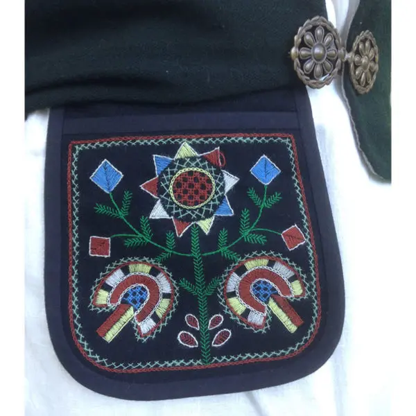 Pakkaus sisältää valmiiksi leikatut taskukappaleet, kirjontalangat ja valmistusohjeet. Ei sisällä pirtanauhaa.