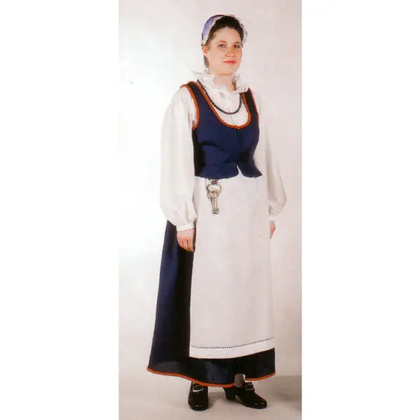 Pakkaus sisältää karstavillapalttinaisen hamekankaan, helmapunoksen, napit, ompelulangat ja ohjeen.
