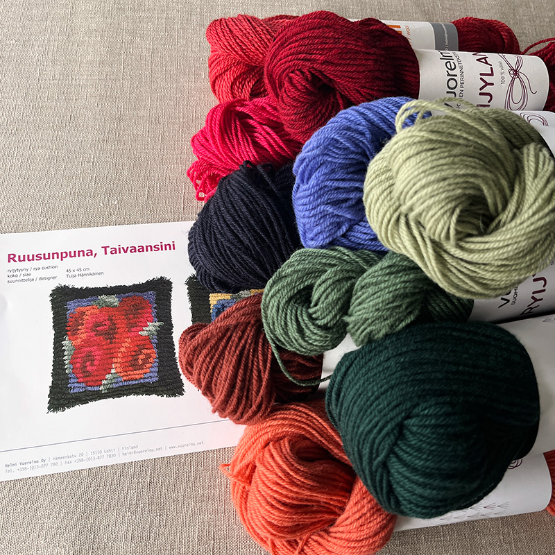 Ruusunpuna ryijytyynypakkaus kutoen
